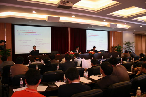 浙江大学国家力学教学基地主任、省级名师毛根海教授介绍了该基地的特色建设经验。教务处负责人作了加强和改进实践教学工作意见的专题报告。机械、电气、生化、理学、艺术等二级学院和工程实践中心就各自开展实践教学工作的情况作了经验交流。