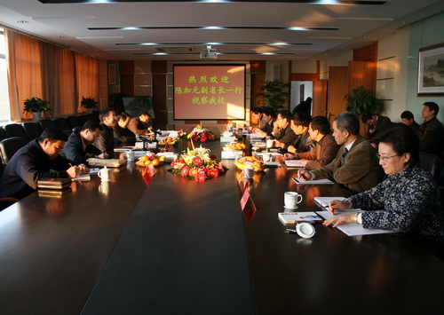 11月30日下午,副省长陈加元一行在省委教育工委书记、省教育厅厅长刘希平等陪同下视察指导我校工作。校党政班子成员徐志平、杜卫、胡浙平、陈浩、陈根芳、吕进、赵东福、鲁凤、黄丰平热烈欢迎陈加元一行,并出席学校工作汇报会。
