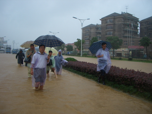 在各级党委、政府的支持下,徐志平、杜卫、陈浩及学校办公室、保卫处负责人等同志驱车赴西溪湿地,搭乘船只进入小和山。湿地内“水漫金山”,很多地方都分不清是河还是岸,船也靠不了边。校领导不顾泥泞,深一脚浅一脚穿过沼泽乘船。因洪水水位过高,船到了周家村无法通过桥洞,众人只能下船赤脚在天目山路涉水步行。此时水深过膝,水流湍急,水下又是沙石甚至碎玻璃,尖锐刺脚。