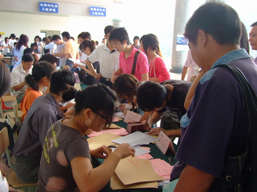 “服务到家,热情到位”是各二级学院一直坚持的宗旨,机械学院统一由学长“一对一”帮新生办理手续,组织带领新生游览校园,熟悉环境并参观了院实验室。艺术学院设立“共产党员服务先锋岗”,所有2005级学生党员统一挂牌服务。生化学院送给新生的第一件礼物是一瓶矿泉水,此外还制定了“接待工作实施方案”。小小的一瓶水装进了师生对新生无微的关怀和满怀的期望。