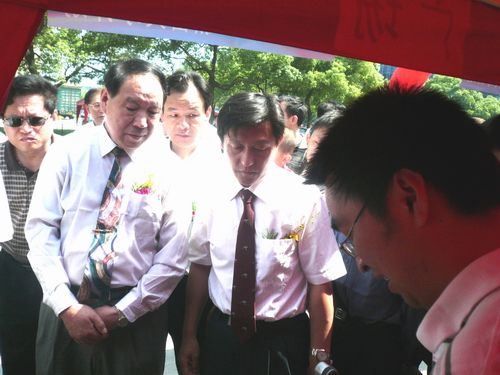 开幕式结束后,周国富等来到各活动区了解情况。在我校展台前,周国富详细询问了项目进展情况。当听完“食品安全快速检测试剂盒”研发人员、我校生化学院03级学生鲍振鑫的介绍后,他耐心地问道:“你们的检测精度有多少?”鲍振鑫自信地告诉他:“我们的部分检测项目已接近于国家标准,我们还在不断努力”。周国富微笑着说道:“小伙子啊,你可要说话算话,要朝着这个方向不断努力啊。”