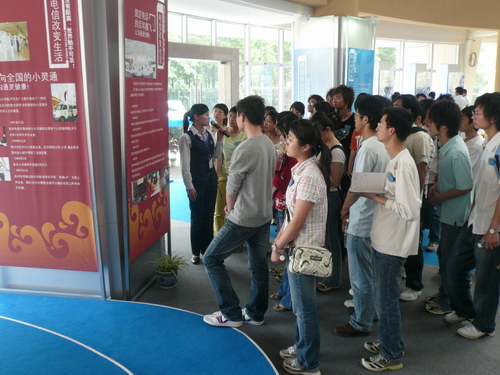 同学们首先参观了杭州电信公司客户服务中心,企业的员工文化和宣传文化马上吸引住了大家的眼球。“‘生活无可选择,当我们必须接受时,唯一的选择是如何生活’,114号码百事通话务席前的标语,班前宣讲区一个个整齐清晰的脚印,让我们能想象到话务员每天清晨诚挚的宣誓和甜美的微笑”,“每天800次始终同样甜美的声音,让我们明白了她们微笑背后的细节和汗水”,“令人感到温暖的是,走廊一隅写着近期的员工生日,特别的爱给特别的他们,一张张荡漾着青春活力的笑脸把视线投向了更远的天空”,同学们纷纷写下感言。