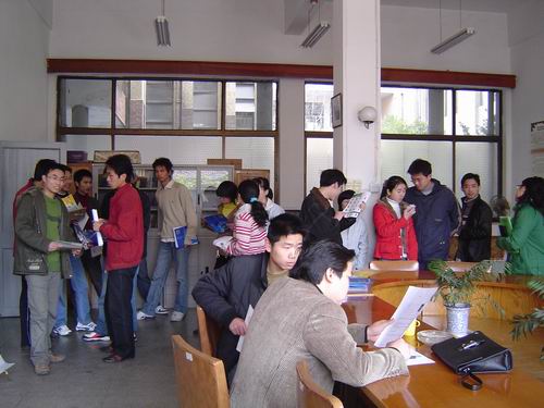 3月21日上午,理学院在学院路校区举行了首届毕业生专场招聘会。 杭州双龙正天数码技术有限公司、杭州博斯贸易有限公司等参加了招聘会。5名同学与企业达成了初步意向。