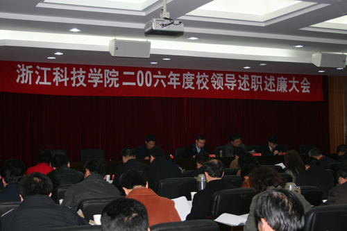 3月15日下午,学校在小和山校区召开2006年度党政领导班子成员述职述廉大会。省委组织部干部三处副处长施建荣、省委组织部干部三处副调研员应方彩、省委教育工委干部处副处长李建章等出席了会议。会议由校党委书记徐志平主持。