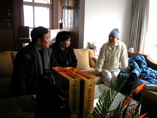 1月23日,校党委副书记胡浙平、省教育工会高教部部长吕建国,在校工会有关人员的陪同下,前往艺术学院教师吴红家中探望。胡浙平、吕建国关切地询问了吴老师的病情,对吴老师积极乐观的生活态度表示赞赏,并鼓励吴老师要树立信心,战胜疾病、争取早日康复。胡浙平一行给吴红老师送上了慰问品和慰问金。