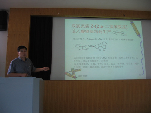 联合国环境发展署(UNEP)制冷技术选择委员会中国委员、国家ODS替代品工程技术研究中心办公室主任、国家履行禁止化学武器公约工作领导小组办公室外聘技术专家、浙江蓝天环保高科技股份有限公司副总工程师、研发部经理、浙江省化工研究院ODS替代品研究所副所长张建君教授级高工为我校学生作了题为“国内外ODS替代品研究开发新进展”的课程讲座。他从大家关心的臭氧层空洞形成和对人类危害谈起,通过亲身经历的我国ODS替代品研制过程及在国外及国际会议场合经历的案例,向同学们介绍了化学工程实验室过程、中试放大过程和产业化过程等全方位研发历程,进一步增强了理论知识的感性认识。