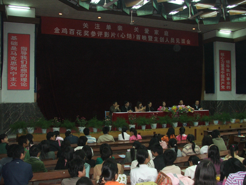 陈浩副书记在首映式上对《心结》主创人员的到来表示热烈的欢迎和衷心感谢,他说,《心结》作为一部主旋律影片,剧本题材创意新颖、轻快诙谐、独树一帜、意义深刻,不仅触动了大学生的心灵,也引起了广大学生关注单亲﹑关爱家庭的思想共鸣;作为本届金鸡百花奖参评影片并受到中国电影家协会重点推荐的作品,能够走入我校,无疑是为广大学生送上了一份文化大餐;在学校大力提倡构建和谐校园的同时,《心结》对和谐家庭的营造以及以人为本的立意无疑为我们提供了一个很好的借鉴。