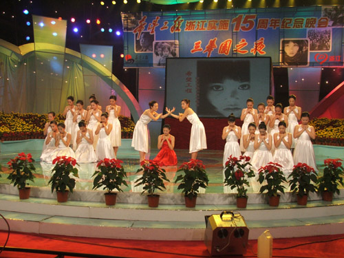 10月10日晚,由团省委、省教育厅主办,省青基会承办的纪念希望工程实施15周年大型文艺晚会在浙江电视台演播厅隆重上演。副省长陈加元、团省委书记赵一德、副书记鲁俊和徐旭、省教育厅副厅长何杏仁等领导出席了此次晚会。由我校大学生艺术团编排并表演的大型舞蹈《感恩的心》以新颖的构思和高质量的表演掀起了晚会的高潮,受到了所有领导、观众的称赞。《感恩的心》系全省高校唯一被录用的节目。