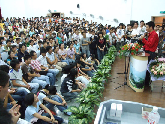 周成建还对我们大学生提出了寄托:从小事做起,并不断地学习、创新,时刻保持热情的心态,并不断克服在学习生活中遇到的困难,不断地获得成功。他送给在场的大学生们两句话。一句是“认认真真做事,自由自在做人”,另一句是“宁做正确方向的乌龟,不做错误方向的兔子”。这两句话也深刻地包含了一位成功企业家的对人生的感悟。