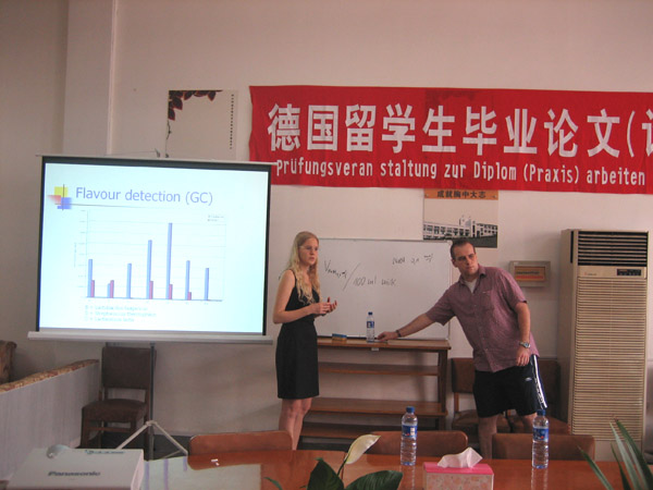 Christiüne Prortner与Christian Bardroff两位同学从今年3月开始在开始到生物与化学工程学院留学,在陈劼老师的指导下完成实习教学环节。实习课题主要内容是益生菌菌种的筛选和高效直投式酸奶发酵剂的制备,研究工作获得了较大的成果。