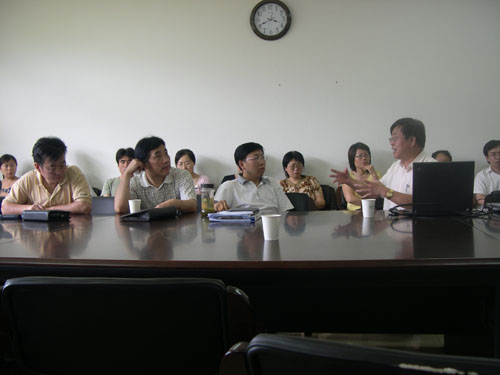 刘祥官教授从数学、流程工艺学、计算机科学的学科交叉、相互融合谈起,详细介绍了他30多年从事大型复杂工业系统智能控制的建模与优化研究及其成果,以及高炉炼铁优化专家系统开发过程。刘祥官教授在报告中说,研究非线性问题是目前数学界的一大热门,目前许多工业控制问题都是非线性控制问题。报告会上,刘教授还引用了丘成桐的话,数学研究很重要,是提升整体科技水平的基础,直接关系到国家核心竞争力的高低。他鼓励广大教师结合实际投身到应用数学的研究中去。刘祥官教授现在研究的主攻方向是运筹与控制,着重研究怎么样能够将非线性计算与工业实际相吻合,找出其中的规律来。