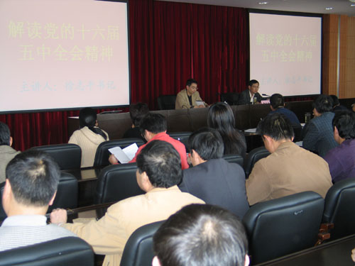 4月7日,2006年学校中层干部培训正式启动。院党委书记徐志平在开班仪式上宣讲了十六届五中全会精神,并作动员报告。徐志平书记从世界观、方法论角度向中层干部阐释了科学发展观的理论基础,要求中层干部把思想和行动进一步统一到科学发展观的精神上来,把智慧和力量进一步凝聚到学校“十一五”发展规划纲要提出的奋斗目标上来。徐志平书记结合当前的高等教育形势和我校实际情况,对中层干部提出了五点要求。