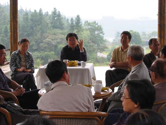 陈根芳向老同志们通报了学校规划调整和校园建设的有关情况。鲁凤向老同志们通报了学校开展保持共产党员先进性教育活动的情况。