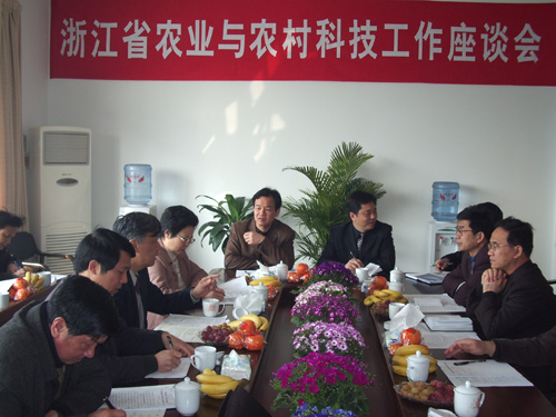 3月19日,省农业与农村科技工作座谈会在我校召开。省科技厅邱飞章副厅长主持了会议。参加会议的有省委办公厅、省政府办公厅、浙江大学、省科技厅、省农业厅、省林业厅、省财政厅、省水利厅、浙江林学院、省农科院、省林科院、省海洋与渔业局、省乡镇企业局、省水利河口研究院、杭州市科技局等单位领导。我校杜卫校长会见了与会代表,蒋家新副校长出席了会议。