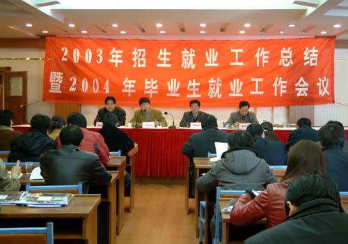今年我校招生工作形势喜人,计划招生3100人,实际招收新生3241人。12月12日下午,学校在小和山校区召开2003年招生就业工作总结暨2004年毕业生就业工作会议。学校领导金光远、胡浙平、蒋家新、唐思鲁出席会议。