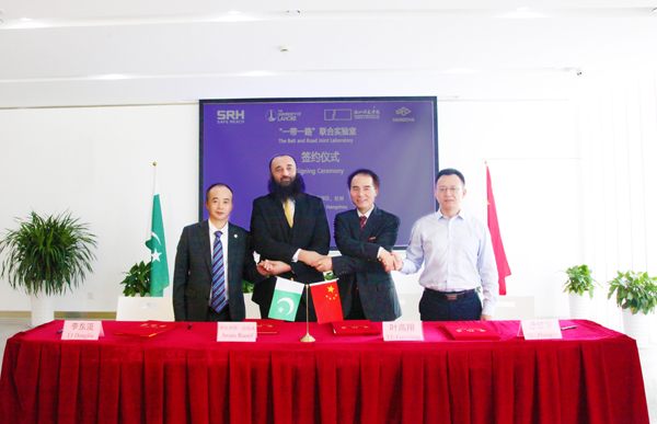 会谈结束后,双方签署两校合作谅解备忘录,并会同杭叉集团和森赫电梯科技研究院共同签署共建“机械运载装备创新设计及智造技术”联合实验室的合作协议。同时,双方举行聘任仪式。我校聘请阿瓦伊思•拉伍夫为我校名誉教授。拉合尔大学聘请叶高翔为名誉教授,并聘请叶高翔、赵东福、郑友取和李其朋为该校博士生导师。