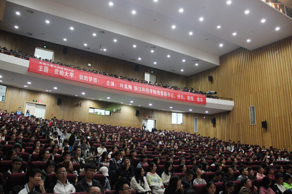 10月12日,“黄浦江源大讲堂”第66讲在安吉校区学生活动中心举行,校长叶高翔作“我的大学,我的梦想!”主题报告,950余名师生聆听报告。