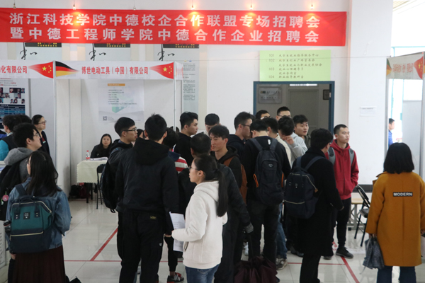 11月8日,首届中德校企合作联盟专场招聘会暨中德工程师学院中德合作企业招聘会在我校举行。